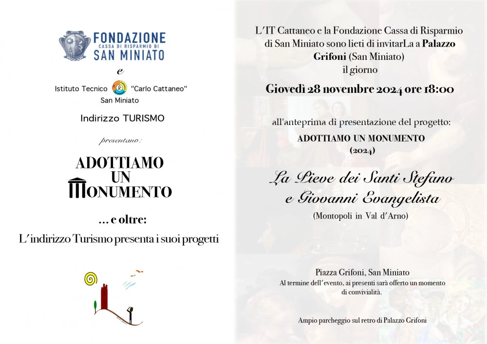 All’anteprima di presentazione del progetto Adottiamo un monumento (Ed. 2024) che si terrà a San Miniato il prossimo giovedì 28 novembre alle ore 18.15 presso Palazzo Grifoni, sede della Fondazione CRSM.