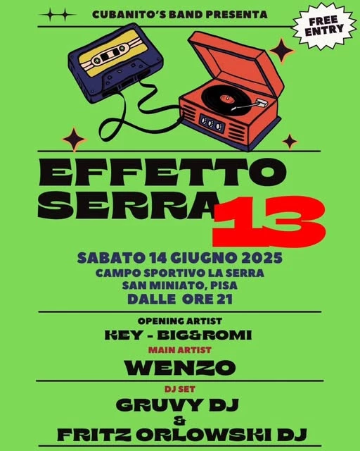 Il prossimo 14 giugno, a La Serra presso il Campo Sportivo si terrà l'evento Effetto Serra 13.