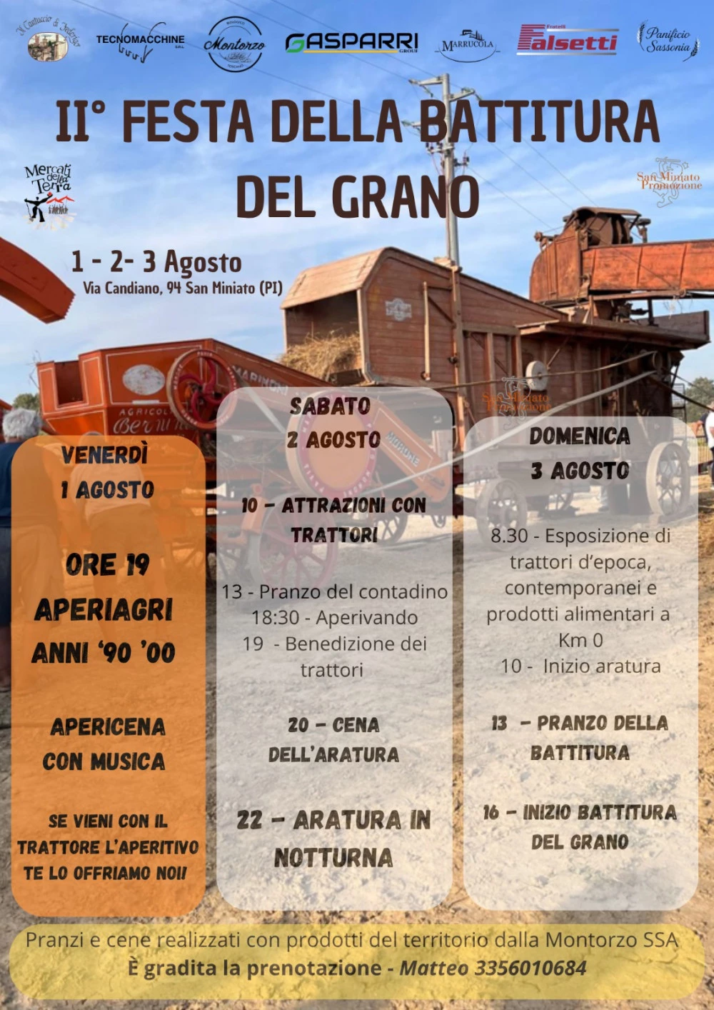 Da venerdì 1 a domenica 3 Agosto torna la Festa della Battitura del Grano a San Miniato realizzato dalla Montorzo SSA.