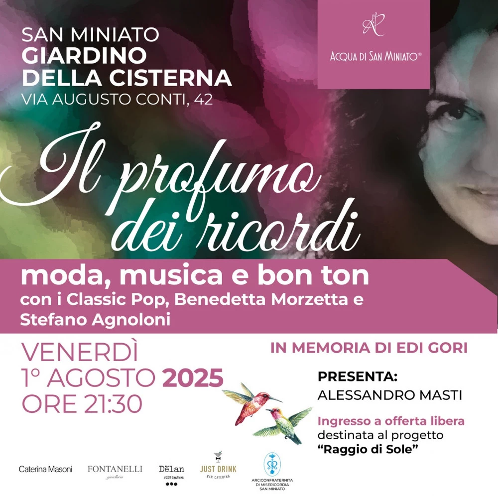 Il 1°Agosto San Miniato si veste di eleganza per celebrare Edi Gori, visionaria creatrice di Acqua di San Miniato, il profumo che ha catturato l'essenza della nostra terra.