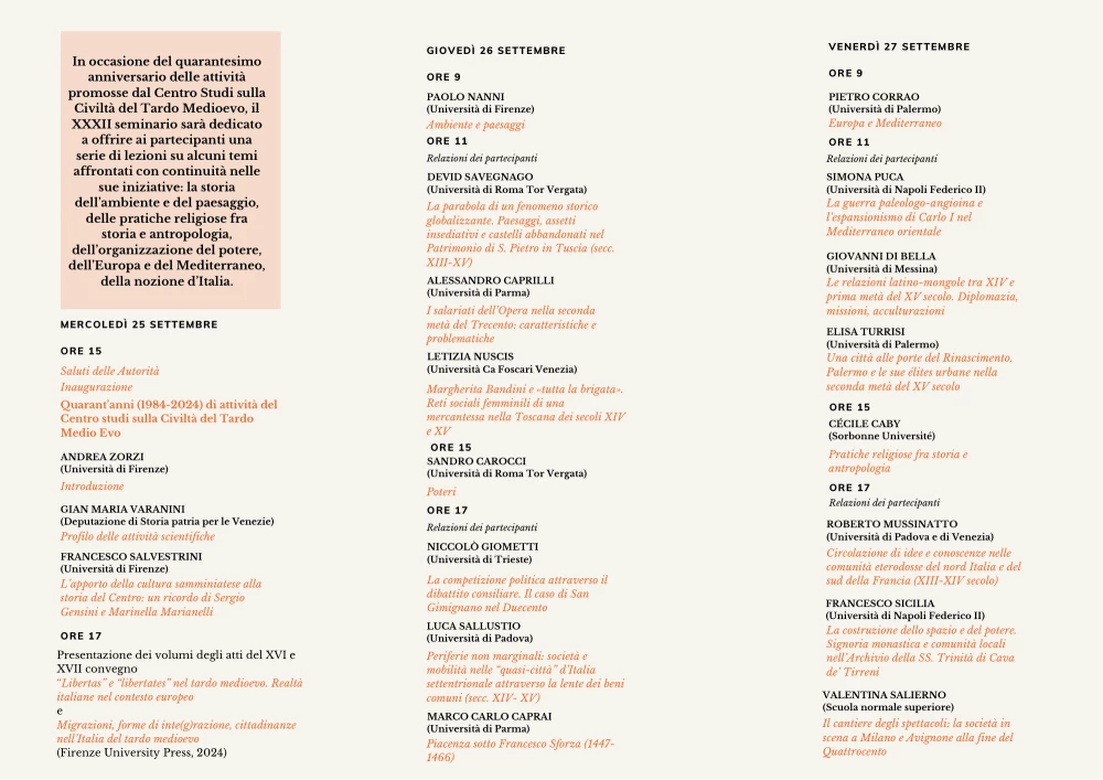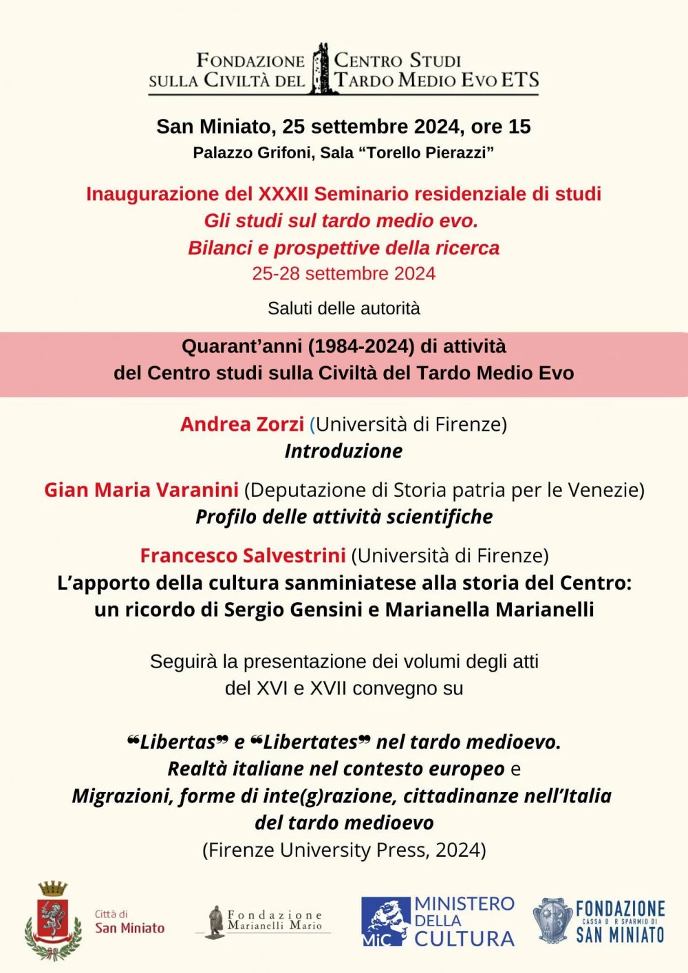 Inaugurazione del XXXII Seminario residenziale Gli studi sul tardo medio evo