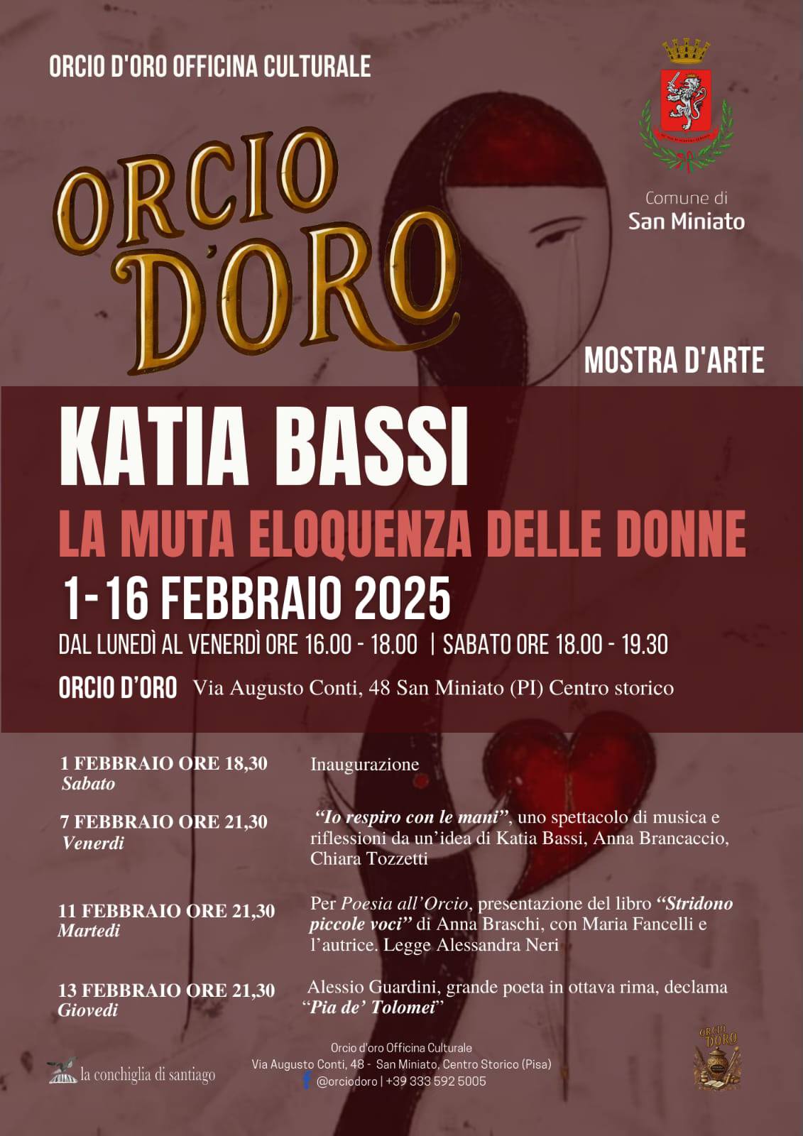 Alla mostra della Bassi si legheranno una serie di serate, la prima è quella di inaugurazione della mostra, il primo febbraio alle 18 e 30, all’Orcio d’oro, via Augusto Conti 48, San Miniato.