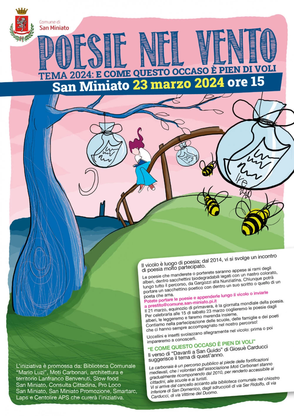 Il vicolo è luogo di poesia: dal 2014 vi si svolge un incontro di poesia molto partecipato. Le poesie saranno appese ai rami degli alberi dentro sacchettini biodegradabili legati a nastri colorati. Decoreranno tutto il percorso da Gargozzi alla Nunziatina dove si sviluppa il Vicolo Carbonaio. Chiunque potrà portare una poesia. Basta inviarle a prestito@comune.san-miniato.pi.it