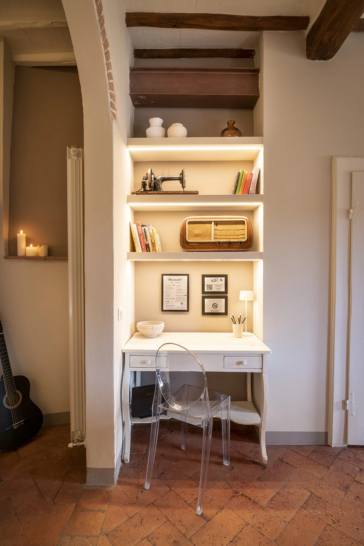 L’appartamento dispone inoltre di un angolo con scrittoio da poter utilizzare come postazione di lavoro.
