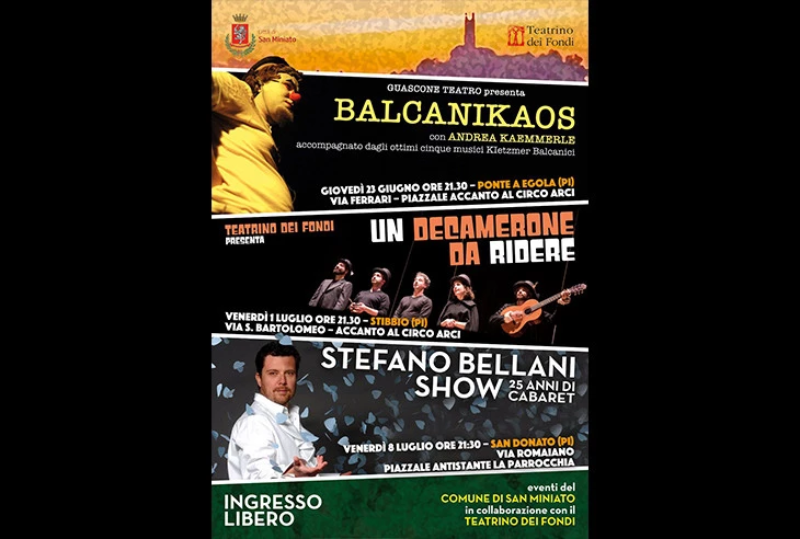 Dal 23 giugno all'8 luglio tre appuntamenti esilaranti dedicati alla risata toscana nelle frazioni di San Miniato (Ponte a Egola, Stibbio, San Donato).