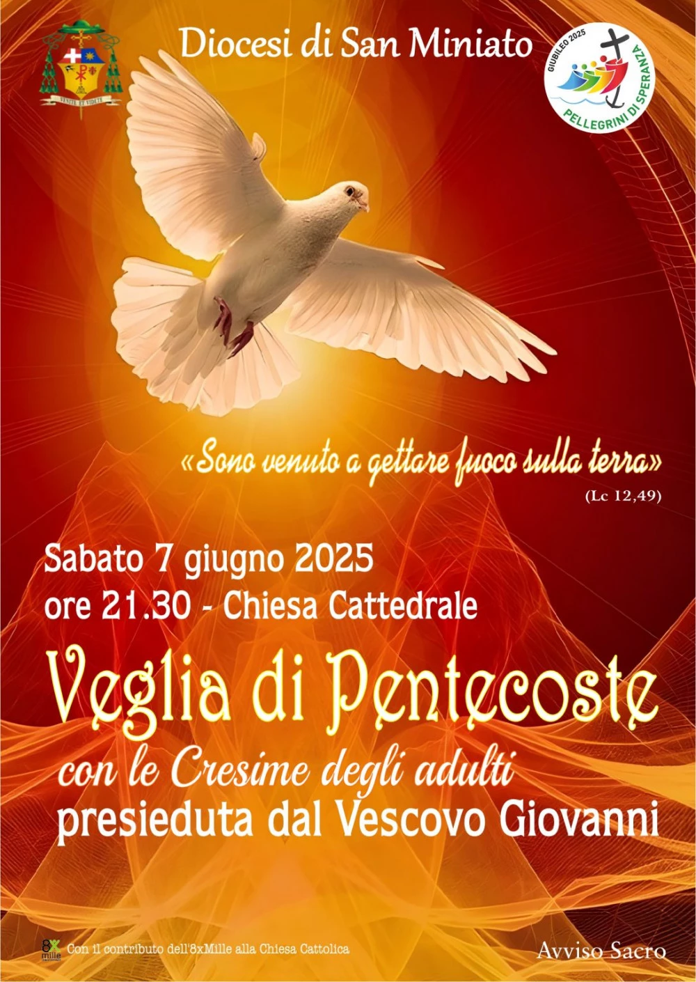 Il prossimo sabato 7 giugno si terrà, nei pressi della Cattedrale di San Miniato, la veglia di pentecoste presieduta dal vescovo Giovanni.